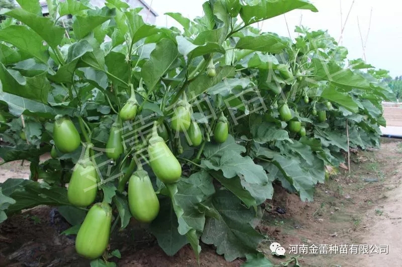 植株半開張,葉色濃綠色,5-7片葉可著生門茄,果實(shí)卵圓形,膨果速度快,連續(xù)座果能力強(qiáng),單果重750g左右。果皮鮮綠有光澤,后期不發(fā)白,貨架期長,商品性佳。